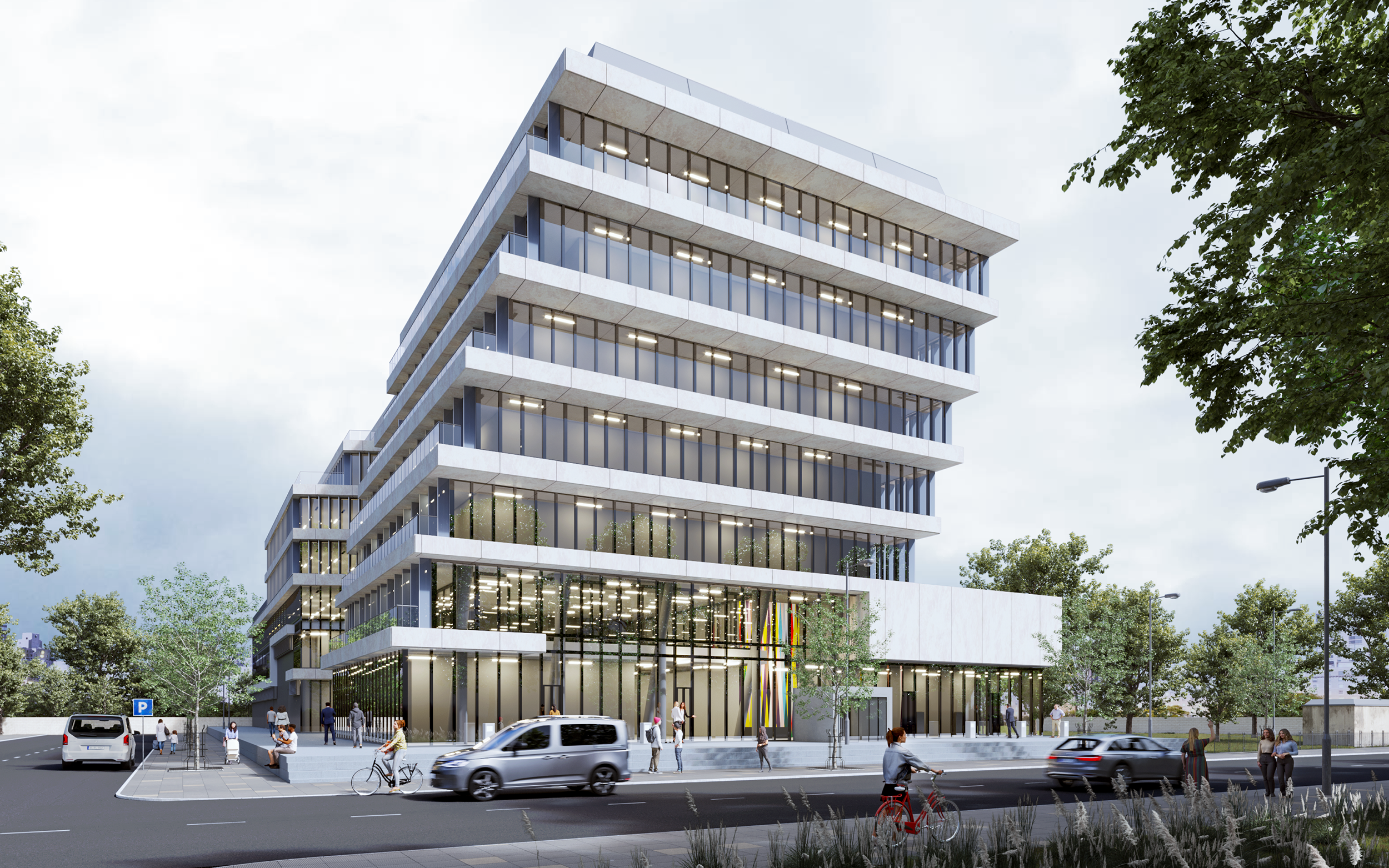 Die Konstruktion ermöglicht eine maximale Nutzung des Tageslichts, was nicht nur die Energieeffizienz steigert, sondern auch eine helle und freundliche Arbeitsumgebung schafft. Flexible Grundrisse und moderne Raumgestaltung ermöglichen eine optimale Nutzung der Innenflächen und schaffen eine inspirierende Atmosphäre.